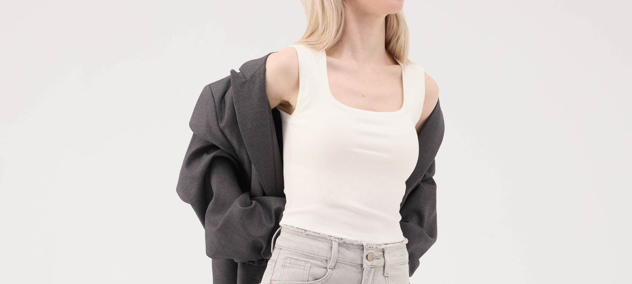 萊賽爾涼感方領包覆羅紋 Bra Top - 白